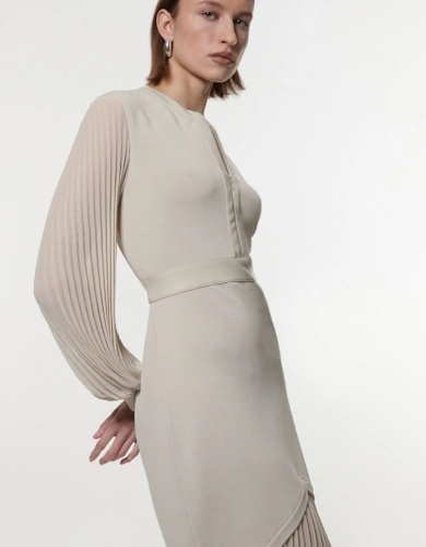 Quilted Applique Organdie Angel Sleeve Woven Maxi Dress