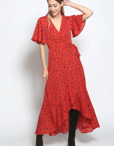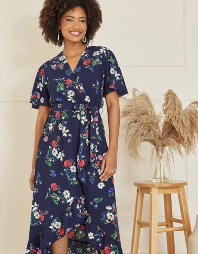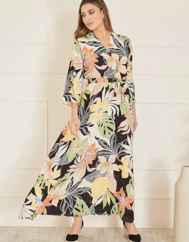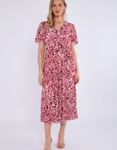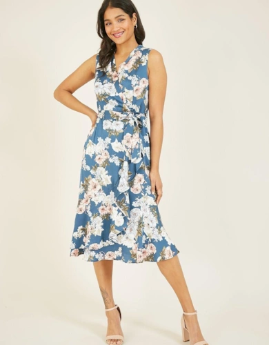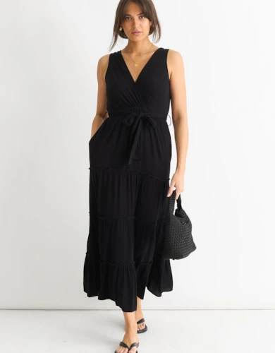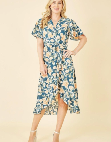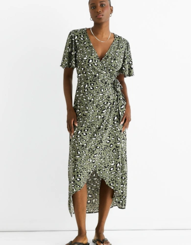 Sage Green Stripe Wrap Belted Viscose Midi Dress