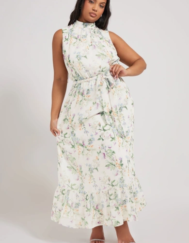 Contrast Swirl Tiered Maxi Dress