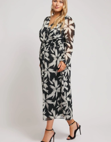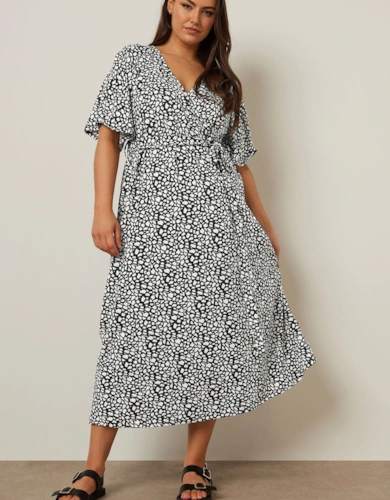 Floral Textured Wrap Midi Dress