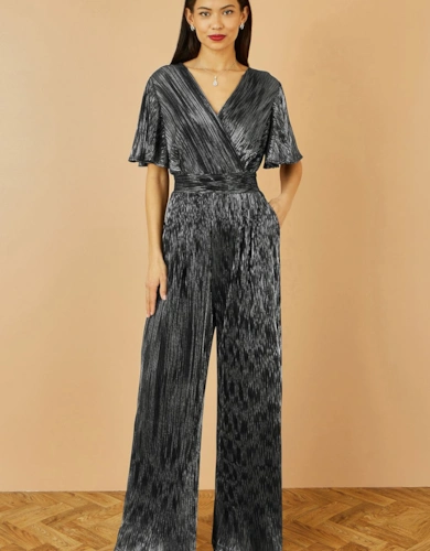 Navy Square Neck Puff Sleeve Culotte Jumpsuit