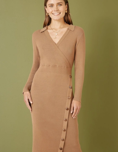 Blue Butterly Floral Tie Knot Front Long Sleeve Midi Dress